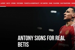 體育資訊9月2日訊 巴西邊鋒安東尼已經官宣加盟貝蒂斯,曼聯官網也發文送上告別: