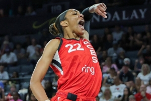 24直播網10月09日訊 10月9日WNBA總決賽G3,王牌隊阿賈·威爾遜中投絕殺,以90-88擊敗水星,大比分3-0獲冠軍點。她獨得34分14板4助3帽,賽后獲NIKE與詹姆斯盛贊,盡顯巨星本色。