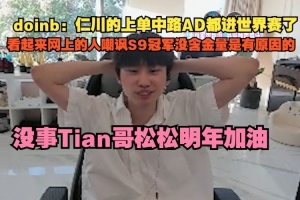 大B:仁川的上單中路AD都進(jìn)世界賽了,看起來網(wǎng)上的人嘲諷S9冠軍沒含金量是有原因的,沒事Tian哥松松明年加油。
