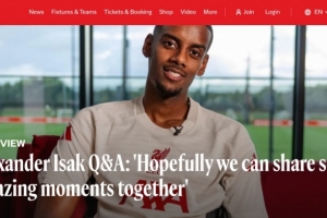 體育資訊9月2日訊 利物浦已經官宣引進紐卡中鋒伊薩克,后者也接受了俱樂部官網的問答采訪。