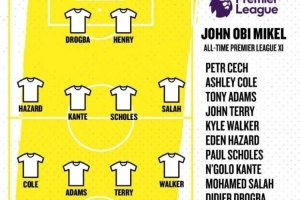 24直播網(wǎng)10月11日訊 切爾西舊將米克爾評(píng)出英超歷史最佳11人。陣容包括門將切赫,后防沃克、特里、亞當(dāng)斯、阿什利-科爾,中場(chǎng)坎特、斯科爾斯,邊路薩拉赫、阿扎爾,以及前鋒德羅巴和亨利。米克爾稱贊了這些球員的偉大表現(xiàn)與領(lǐng)袖氣質(zhì)。