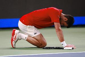 本場比賽德約受傷病影響多次中斷比賽,在第2盤中,德約科維奇在多拍鏖戰中拿下一分,隨即累得跪在地上緩解疲勞。盡管傷病和體能已經嚴重影響到了狀態,德約仍然堅持打完了本場比賽。