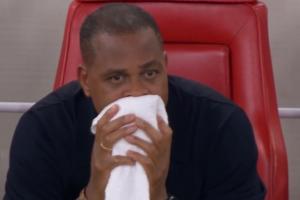 隨后,他就一直坐在教練席上不斷地用毛巾抹臉,眼眶泛紅,場上隊員和工作人員與馬寧發生沖突時他也只是看著。