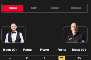 馬克-威廉姆斯打出一桿破百(127)和五桿50+(75、73、56、68、69),肖恩·墨菲打出兩桿50+(55、69)。