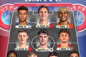 24直播網10月13日訊 Score 90評選出歐洲U21全明星陣容,亞馬爾、若昂-內維斯領銜。西班牙三人入選最多,土耳其、法國、英格蘭各兩人,葡萄牙、德國各一人。該陣容匯集了歐洲足壇最具潛力的年輕才俊。