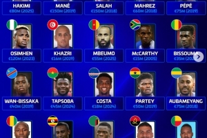 以下為非洲各國歷史身價最高球員具體身價情況: