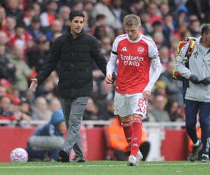 24直播網(wǎng)10月14日訊 阿森納隊長厄德高膝蓋內(nèi)側(cè)副韌帶受損,預(yù)計缺陣六周。他將錯過七場關(guān)鍵比賽,包括英超、歐冠和聯(lián)賽杯,目標(biāo)北倫敦德比前回歸。他肩傷后又添新傷,球隊傷病名單上還有熱蘇斯等人。埃澤和恩瓦內(nèi)里將承擔(dān)中場重任,新援因卡皮耶有望回歸。