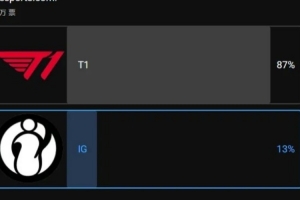 LoL官方發布預測投票,在4.4萬投票中,87%的人認為T1將擊敗IG。