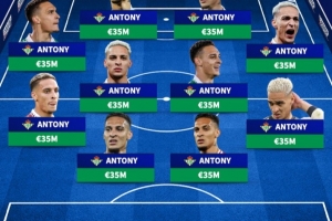 體育資訊9月2日訊 五大聯賽夏窗關閉,德轉整活安東尼,貝蒂斯全員安東尼。