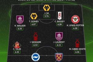 后衛:沃克(伯恩利)、托迪-戈麥斯(狼隊)、巴錫(富勒姆)、劉易斯-波特(布倫特福德)