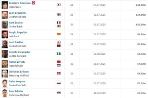 2:布朗希爾 29歲/中場 身價1400萬歐