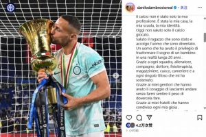 體育資訊8月30日訊 今日,國米舊將丹布羅西奧在個人Ins上發表長文,宣布退役。