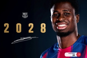 24直播網10月16日訊 巴薩官方宣布與18歲后衛蘭德里-法雷續約至2028年。法雷8歲便加入巴薩青訓,司職中衛與邊后衛,已代表B隊出場21次。他身體強壯、控球出色,并曾代表西班牙U16至U18國青隊出戰。