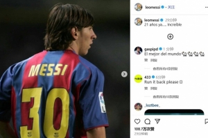 梅西發(fā)布了一張他身穿巴薩30號(hào)球衣的經(jīng)典舊照,并配文寫道:“已經(jīng)21年了……難以置信。”
