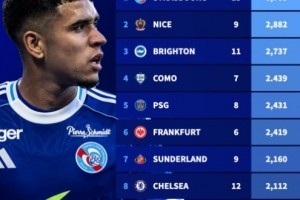24直播網10月17日訊 德國轉會市場統計五大聯賽U21球員上場時間,斯特拉斯堡以5785分鐘居首,尼斯2882分鐘次之,布萊頓2737分鐘位列第三?;蜀R雖僅4名U21球員,卻以2109分鐘排名第9,展現高效青訓使用。