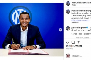 阿坎吉社媒曬出與國米簽約的照片,配文:“對即將在國米迎來的新篇章感到興奮。全新的開始,巨大的挑戰,以及一個我可以稱之為家的偉大俱樂部!”