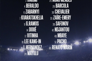 24直播網10月17日訊 巴黎法甲第8輪將主場迎戰斯特拉斯堡。大名單中,克瓦拉茨赫利亞和杜埃回歸,但登貝萊、馬爾基尼奧斯等主力繼續缺席。門將和后防人員充足,鋒線則有拉莫斯等多名攻擊手可供選擇。