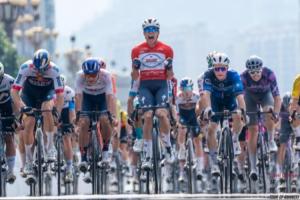 隨著比賽進(jìn)入后半程,主集團(tuán)逐步提速,突圍集團(tuán)在最后30公里被追回。馬尼耶憑借連續(xù)四場賽段勝利,繼續(xù)身披三件領(lǐng)騎衫——象征個(gè)人總成績領(lǐng)先的紅衫、沖刺積分領(lǐng)先的藍(lán)衫、以及青年最佳的白衫。阿爾凱亞-B&B酒店車隊(duì)的西蒙·居列爾米繼續(xù)保有象征爬坡王的圓點(diǎn)衫;迪卡儂AG2R車隊(duì)的斯坦·德伍爾夫憑借積極突圍獲得本賽段敢斗獎(jiǎng)。
