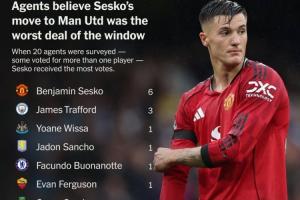 24直播網(wǎng)10月18日訊 The Athletic年度經(jīng)紀人調查顯示,曼聯(lián)7650萬歐元簽下舍什科被評為英超夏窗最差轉會,獲6票。經(jīng)紀人認為其轉會費過高、時機不佳且戰(zhàn)力平庸。曼城3120萬歐簽下門將特拉福德位列第二,獲3票,因其可能浪費球員才華及決策失誤。其他備受爭議的轉會還包括利物浦高價簽下伊薩克和維爾茨等。
