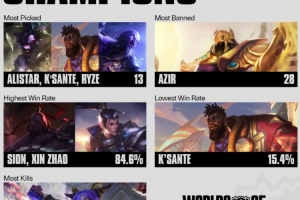 體育資訊10月20日訊 世界賽至今英雄BP數據如下: