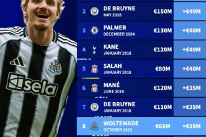 24直播網(wǎng)10月20日訊 德轉(zhuǎn)會(huì)布了英超球員單次身價(jià)漲幅最高的榜單。薩拉赫以7000萬歐的漲幅位居榜首,德布勞內(nèi)和帕爾默緊隨其后,均上漲4000萬歐。該榜單展現(xiàn)了球員在出色表現(xiàn)后市場(chǎng)價(jià)值的迅猛增長(zhǎng)。