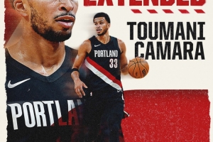 24直播網10月21日訊 開拓者前鋒圖馬尼-卡馬拉達成多年提前續約。據悉為4年8200萬合同。卡馬拉是2023年52號秀,上賽季場均11.3分5.8籃板,以出色防守入選最佳防守二陣,是聯盟少數搶斷過百且蓋帽上50的球員之一。