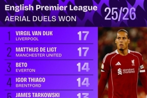 體育資訊9月3日訊 數據機構squakwa統計了新賽季英超球員解圍情況,兩位荷蘭中衛并列榜首。