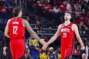 明天上午7點半,NBA揭幕戰,火箭將在客場對陣衛冕冠軍雷霆?;鸺夷粦鹗装l是:阿門、杜蘭特、小賈巴里-史密斯、申京和亞當斯。