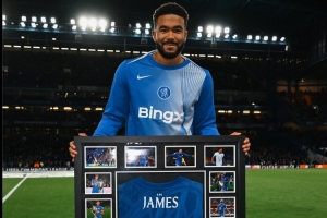 24直播網10月23日訊 切爾西隊長里斯·詹姆斯迎來職業生涯200場里程碑。賽前,俱樂部向他贈送了紀念相框,印有他200場球衣及捧得世俱杯、歐冠等高光時刻。切爾西官推也發文祝賀,稱他“實現著夢想”。
