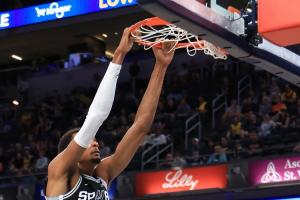 24直播網10月23日訊 NBA常規賽,馬刺大勝獨行俠。文班亞馬延續“空中作業”風格,減少三分出手,苦練的單打技術盡顯威力,沖擊內線讓對手無力反抗。他僅出戰不到30分鐘,高效砍下40分15籃板,正負值高達+31,率隊早早奠定勝局。