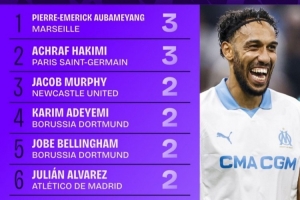 24直播網(wǎng)10月23日訊 歐冠聯(lián)賽階段戰(zhàn)罷三輪,Squawka統(tǒng)計(jì)了最新助攻榜。馬賽前鋒奧巴梅揚(yáng)與巴黎后衛(wèi)阿什拉夫均以3次助攻并列榜首。紐卡斯?fàn)柕哪频?名球員以2次助攻并列第二位。