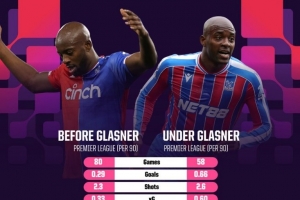 以下為格拉斯納執教前后馬特塔在英超每90分鐘數據對比: