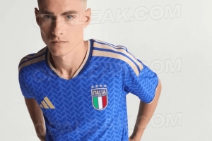 阿迪達斯標志性的加大版三條紋位于肩部,而阿迪達斯和意大利足協的徽章則采用金色,醒目地突出在藍色底色上。