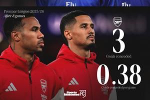 24直播網10月24日訊 阿森納本賽季防守強勢,12場各項賽事僅丟3球。數據顯示,若此防守效率持續,他們本賽季英超預計僅失14球,將打破切爾西塵封19年的單賽季最少丟球紀錄。
