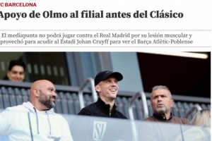 因比目魚肌傷勢(shì)缺陣國(guó)家德比,奧爾莫現(xiàn)身觀戰(zhàn)巴薩B隊(duì)比賽。