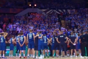 賽后,冰島的球迷們并沒(méi)有離場(chǎng),而是和冰島男籃同在,在現(xiàn)場(chǎng)一起高歌。