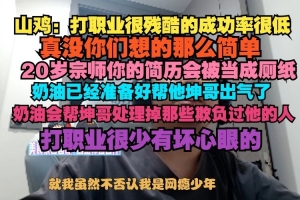 shanji:打職業很殘酷的成功率很低,真沒你們想的那么簡單,20宗師你的簡歷會被當成廁紙,奶油已經準備看幫他坤哥出氣了,奶油會幫坤哥處理掉那些欺負過他的人