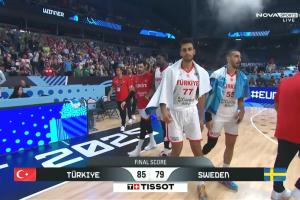 24直播網09月06日訊 男籃歐錦賽淘汰賽中,土耳其隊以85-79險勝瑞典,晉級八強。比賽進程一波三折,上半場瑞典領先,土耳其在第三節發力反超。盡管末節瑞典追平比分,但土耳其核心申京挺身而出,最終幫助球隊六戰全勝晉級。