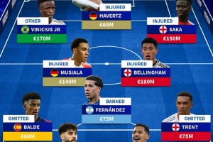 24直播網09月06日訊 德國轉會市場公布了缺席9月國家隊比賽的球員名單,總身價高達10.9億歐元。這份名單包括多位頂級球星,如維尼修斯、薩卡、穆西亞拉和貝林厄姆等,涵蓋門將、后衛、中場和前鋒多個位置,彰顯了歐洲足壇的豪華陣容深度。