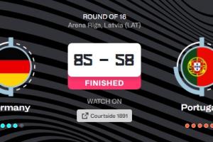 24直播網09月06日訊 德國男籃在歐錦賽1/8決賽中,經歷前三節手感冰涼后,末節轟出沖擊波,以85-58大勝葡萄牙,強勢晉級八強。球隊本屆賽事六戰全勝,保持不敗金身。