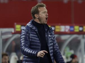 24直播網(wǎng)09月07日訊 德國(guó)主帥納格爾斯曼將對(duì)陣北愛爾蘭的比賽中可能變陣3-5-2。勞姆、勒威林等將競(jìng)爭(zhēng)左路,安東、格羅斯有望入選。安德里希或成中場(chǎng)新選擇,主帥曾與若納坦-塔長(zhǎng)時(shí)間交談,其首發(fā)存疑。基米希或繼續(xù)坐鎮(zhèn)中場(chǎng),維爾茨、格納布里和沃爾特馬德領(lǐng)銜進(jìn)攻。