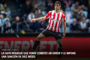 24直播網09月08日訊 畢爾巴鄂競技后衛耶雷因誤服伴侶防脫發藥物,歐聯杯賽后被查出禁藥陽性。歐足聯認定其無主觀故意,但需負責任,故禁賽10個月。禁賽期從今年6月2日起算,他將于2026年4月2日恢復比賽資格。