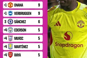 24直播網(wǎng)09月09日訊 根據(jù)OPTA數(shù)據(jù),曼聯(lián)門將奧納納自2023年8月加盟以來,與布萊頓的韋爾布魯根并列,在英超各項(xiàng)賽事中因失誤導(dǎo)致失球的次數(shù)最多,均為9次,表現(xiàn)墊底。