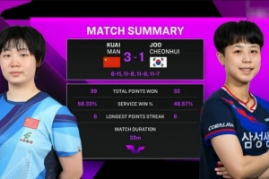 體育資訊9月10日訊 WTT中國澳門冠軍賽女單1/16決賽,蒯曼3-1戰勝朱芊曦 ,???成功晉級,下一輪將對陣伊藤美誠。