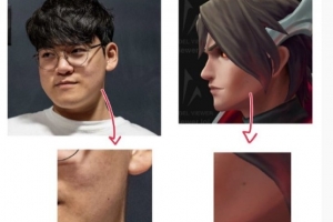 T1韋魯斯臉上和Gumayusi一樣有顆小痣。