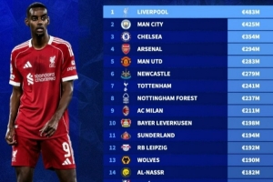英超俱樂部領跑2025年轉會支出榜,利物浦以4.83億歐元高居榜首,榜單前八名全部由英超球隊包攬。