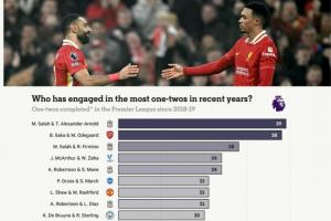 ?? 薩拉赫 & 阿諾德(利物浦)—— 39次
