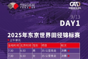 體育資訊9月12日訊 2025東京田徑世錦賽賽程出爐,男子100米決賽將于北京時間9月14日晚上21:20進行。