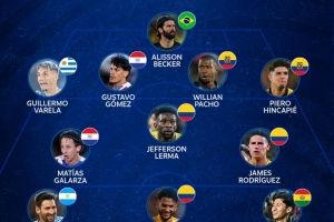 后衛:瓦雷拉(烏拉圭)、古斯塔沃-戈麥斯(巴拉圭)、帕喬(厄瓜多爾)、因卡皮耶(厄瓜多爾)