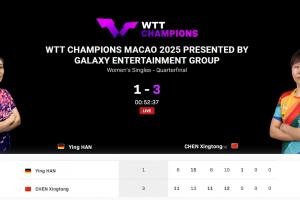 體育資訊09月13日訊 WTT中國澳門冠軍賽1/4決賽,削球手韓瑩vs陳幸同,第二局觸發(fā)“數(shù)板階段”。